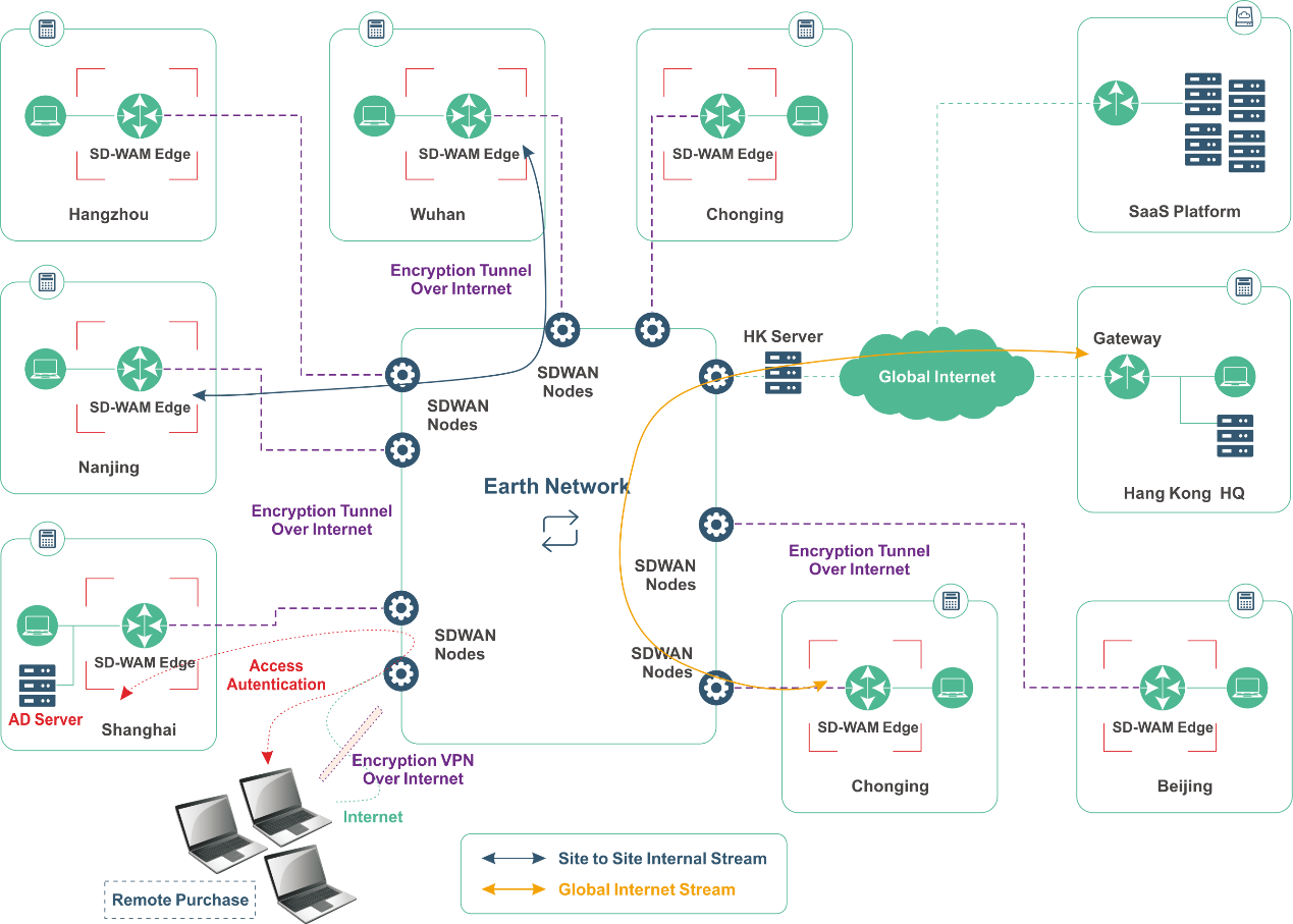 | 扩 展 性 | 未来东南亚工厂及北美办公室也会陆续接入进整个SD-WAN 大网 |