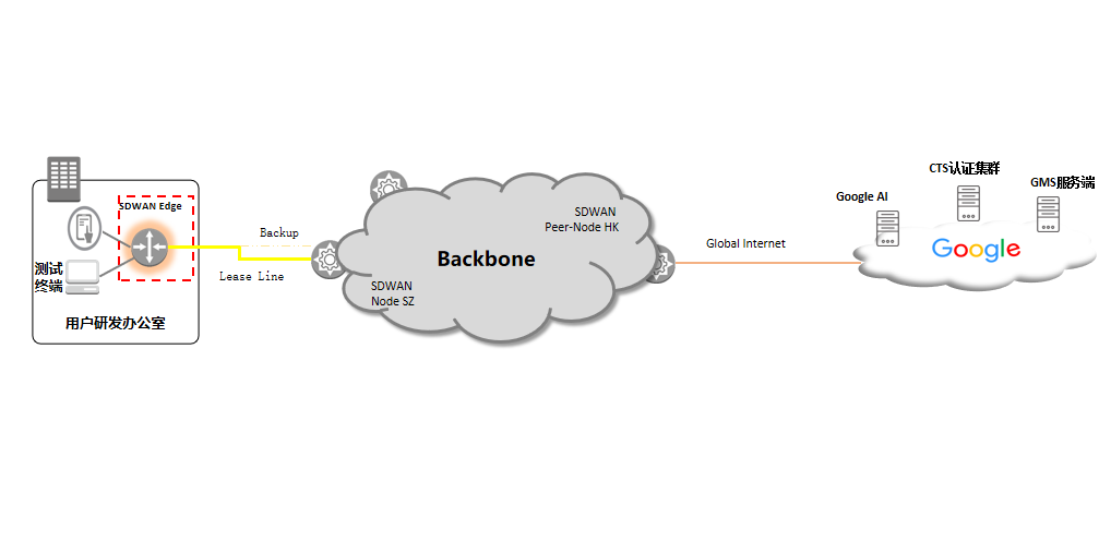 | 使用效果 | 我司提供专业的运维服务及优质的线路资源,双路由专线作为最后一公里保障客户机房至我司骨干网的高可用,我司香港出口超级网关为客户提供IPV4/IPV6双栈协议通道,与谷歌服务器互为PEER,直达谷歌香港节点延时低于20ms,测试周期由原先的周为单位缩短为天,认证通过率100%;成功助力企业突破海外硬件销售市场 |