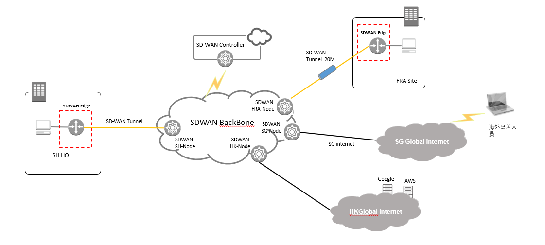 | 扩 展 性 | 未来东南亚工厂及北美办公室也会陆续接入进整个SD-WAN 大网 |