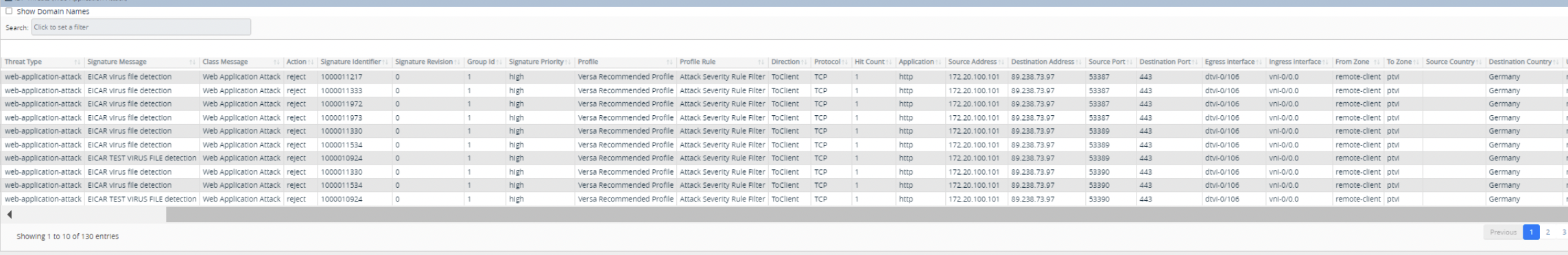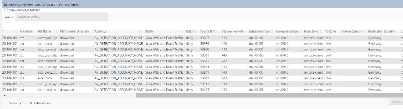 当侦测到病毒文件特征码时,CPE将立刻终端下载链接,并在控制平台留存相关记录,记录可以溯源。系统可以自动生成报表。