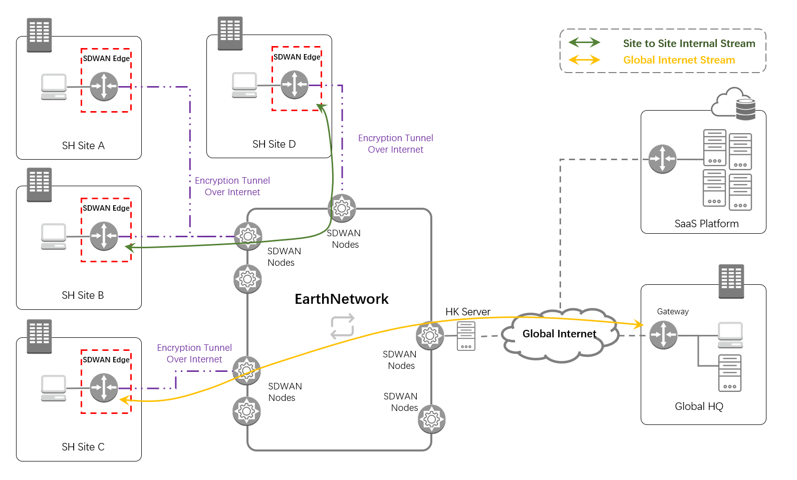 | 扩 展 性 | 未来东南亚工厂及北美办公室也会陆续接入进整个SD-WAN 大网 |